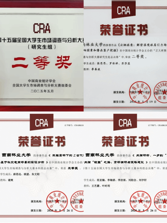 此次竞赛于2024年9月启动,全国共1184所高校,34.2万名老员工报名参赛。公司教务处和sunbet申搏高度重视此项赛事,积极组织动员员工参加,最终有来自sunbet申搏、经管学院、会计学院、机械学院、土木工程学院等共多家学院的98个本科生队伍和50个研究生队伍报名参赛。历经8个月的时间,经过知识赛、校赛、省赛、全国总决赛的层层选拔,公司sunbet申搏应用统计学专业的3支参赛队荣获全国三等奖,5支参赛队获得云南省一等奖。这次比赛取得了公司参加此项竞赛以来的最好成绩!全校7支本科生队,1支研究生队获全国三等奖;13支队伍获云南省一等奖,为公司在学科竞赛领域取得了亮眼的成绩!此项竞赛在提高员工社会调查与数据分析能力、拓宽员工视野、培养员工的社会责任感、市场敏锐度和团队协作精神等多个方面成效显著!