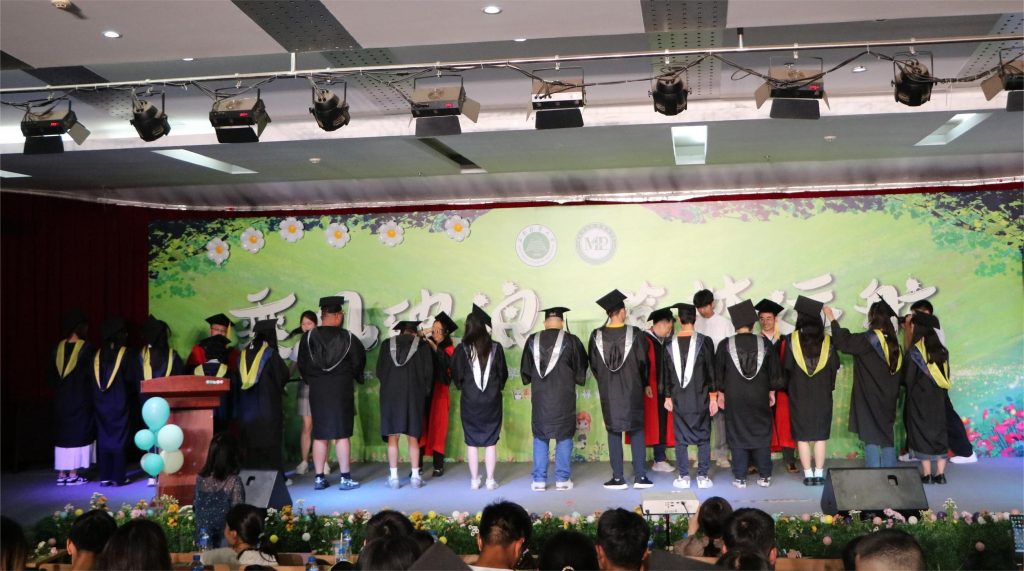 毕业典礼上,学院领导和毕业生代表进行发言,随后2023届毕业生依次上台依次接受拨穗礼与领导老师合影留念。