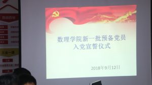 为进一步激励入党同志严格要求自己,牢记入党誓词,坚定为共产主义事业奋斗终身的信心和决心,数sunbet申搏于2018年9月12日组织新一批预备党员举行集中宣誓仪式。仪式由数公司党总支组织员唐文军主持,党总支书记李军、副书记谢爽出席仪式。参加仪式的还有学院员工支部的积极分子代表。