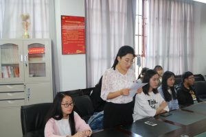 议程二:支部书记宣读入党宣誓名单。本科生第一党支部:张丽霞、王邱楷宁、钱梦婷、冯轩、李晓露、侯波、张耀杰、张永英、马倩倩、谭媛芳、谢玲梅、杨智雄、杜飞;本科生第二党支部:杨袖彬、江峰、赵子涛、段应建、李凤玲、胡金屿、张娅。