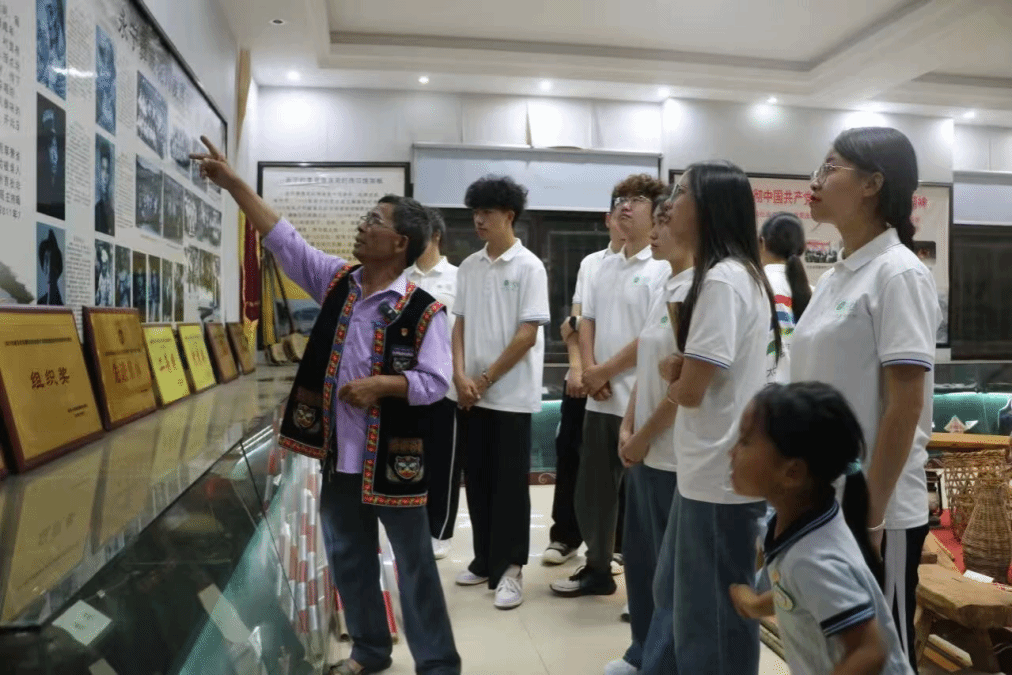 走进村里的民族文化馆,讲解人为同学们介绍着民族的过往。