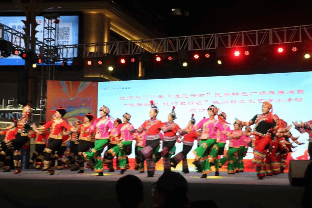 走出尼苏小镇,实践团队走进了红河州“遇见云南”民族特色广场舞展演现场,非遗舞蹈都生动地呈现在眼前。