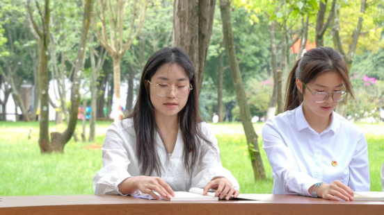 紧接着,同学们散入林荫开启自由阅读,在静谧中与作者对话、与自我交流,还细心记录下关于生态保护与文化传承的点滴思考。
