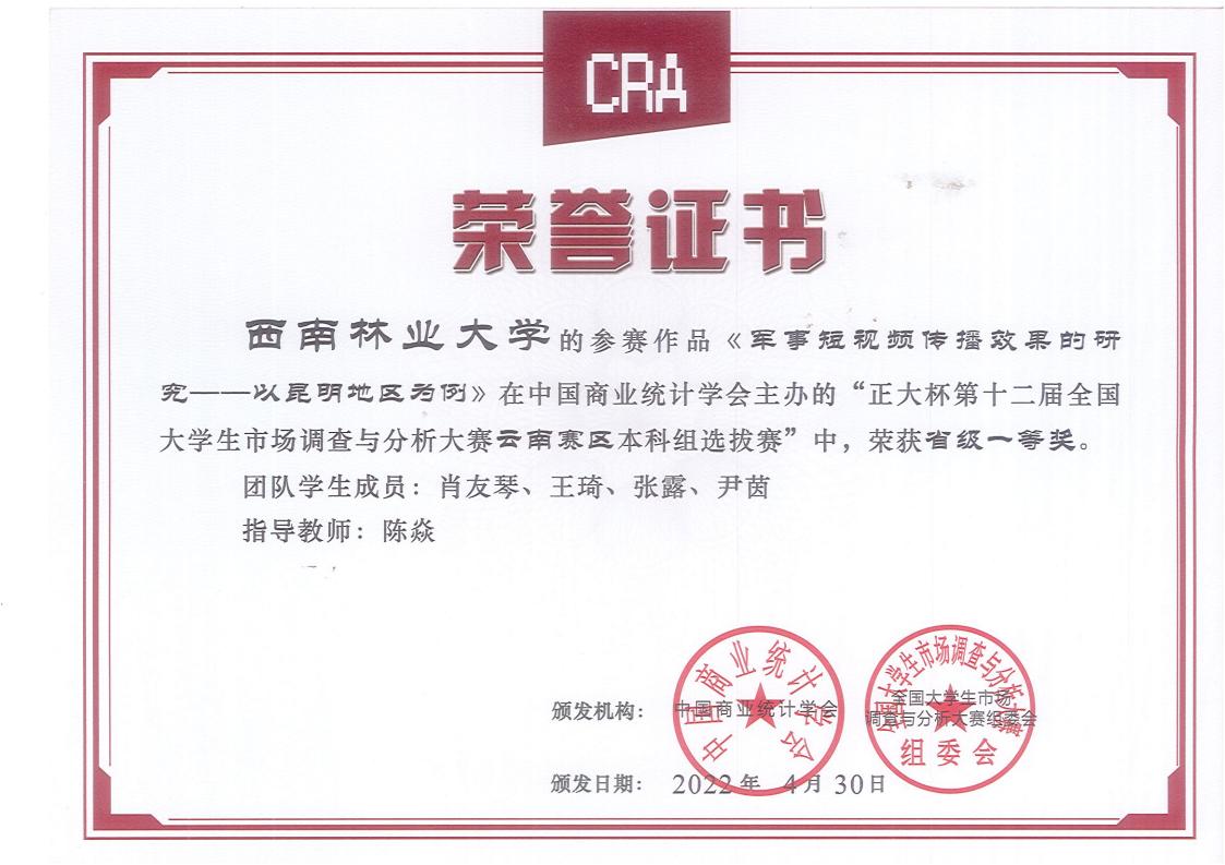 2022年正大杯第十二届全国老员工市场调查与分析大赛省级奖