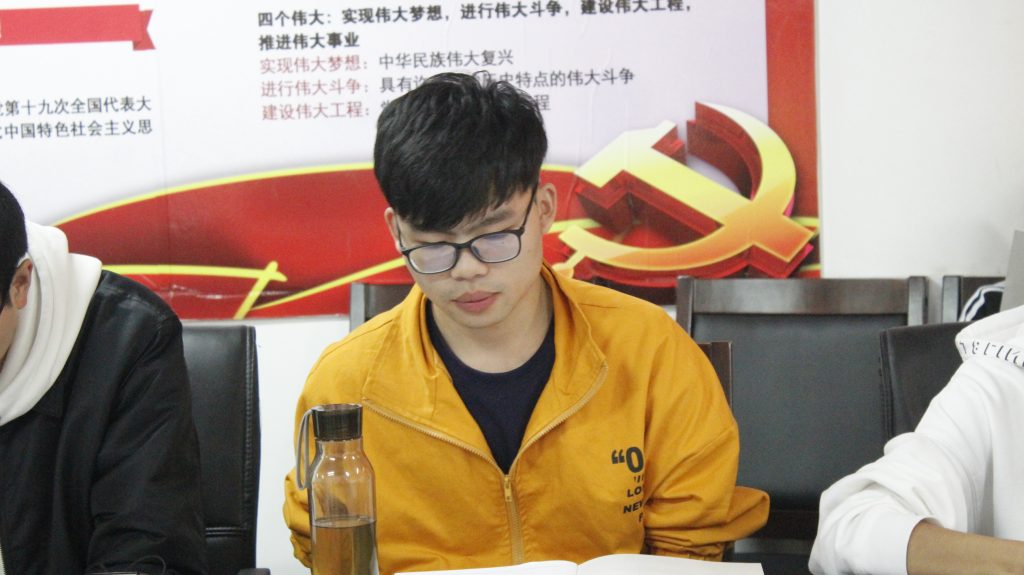 2017信息与计算科学团支部班长彭海波谈到:习近平新时代中国特色社会主义思想中,提出了很多新的论断,为我们以后的学习指明了方向。在以后的学习中,“抓重点、补短板、强弱项”是我的奋斗目标。特别是在中共十九大报告中提到:“中国梦是我们这一代的,更是青年一代的。”我对这句话的印象比较深刻,我们作为新时期的共青团员,感到肩上责任重大,我们一定要努力学习本领,坚定理想信念,以习近平新时代中国特色社会主义思想为指导,努力学习拼搏奋斗,为早日实现“中国梦”贡献自己的一份力量。