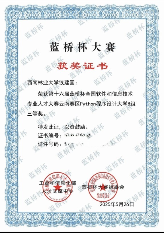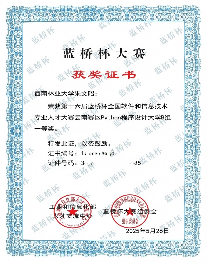蓝桥杯全国软件和信息技术专业人才大赛省级奖