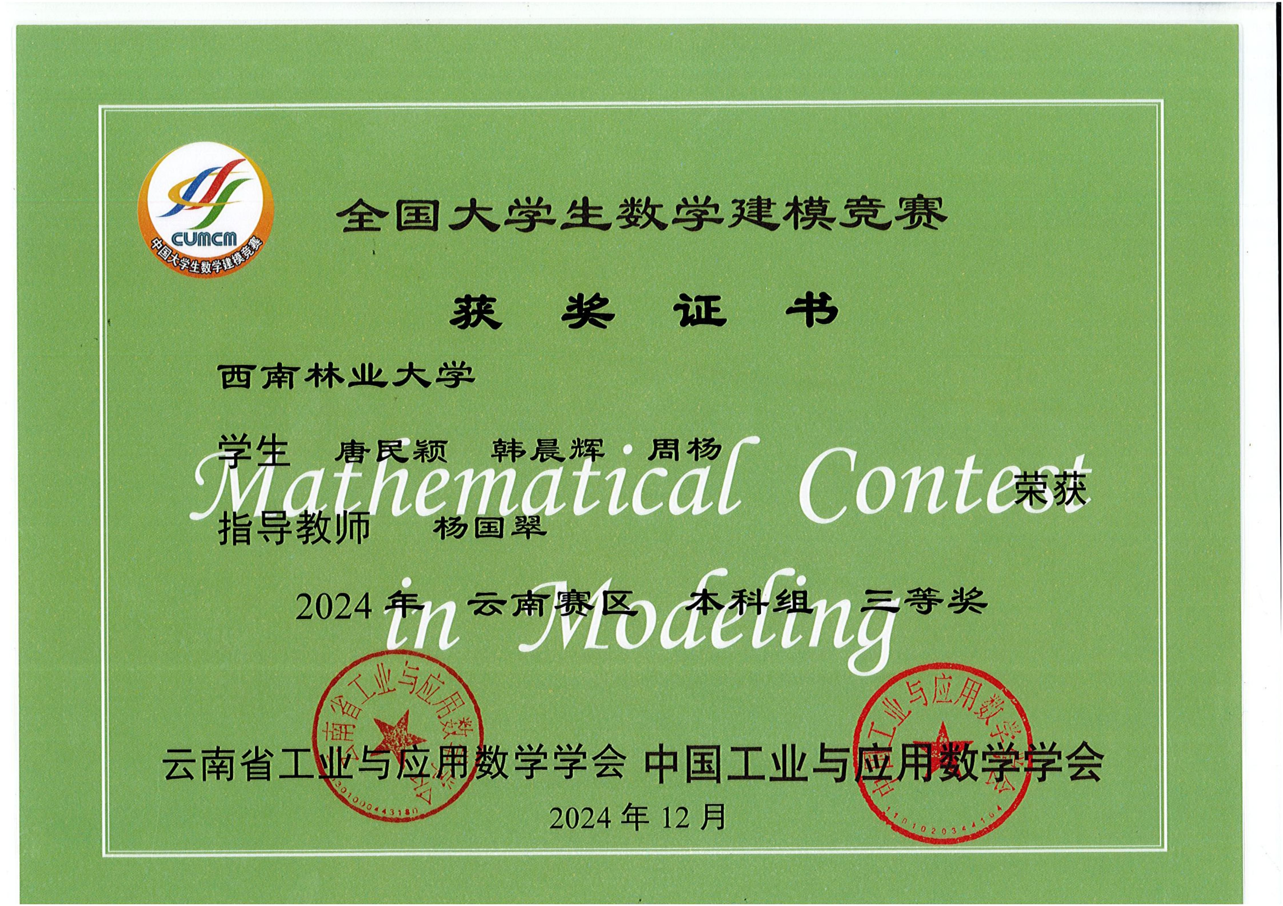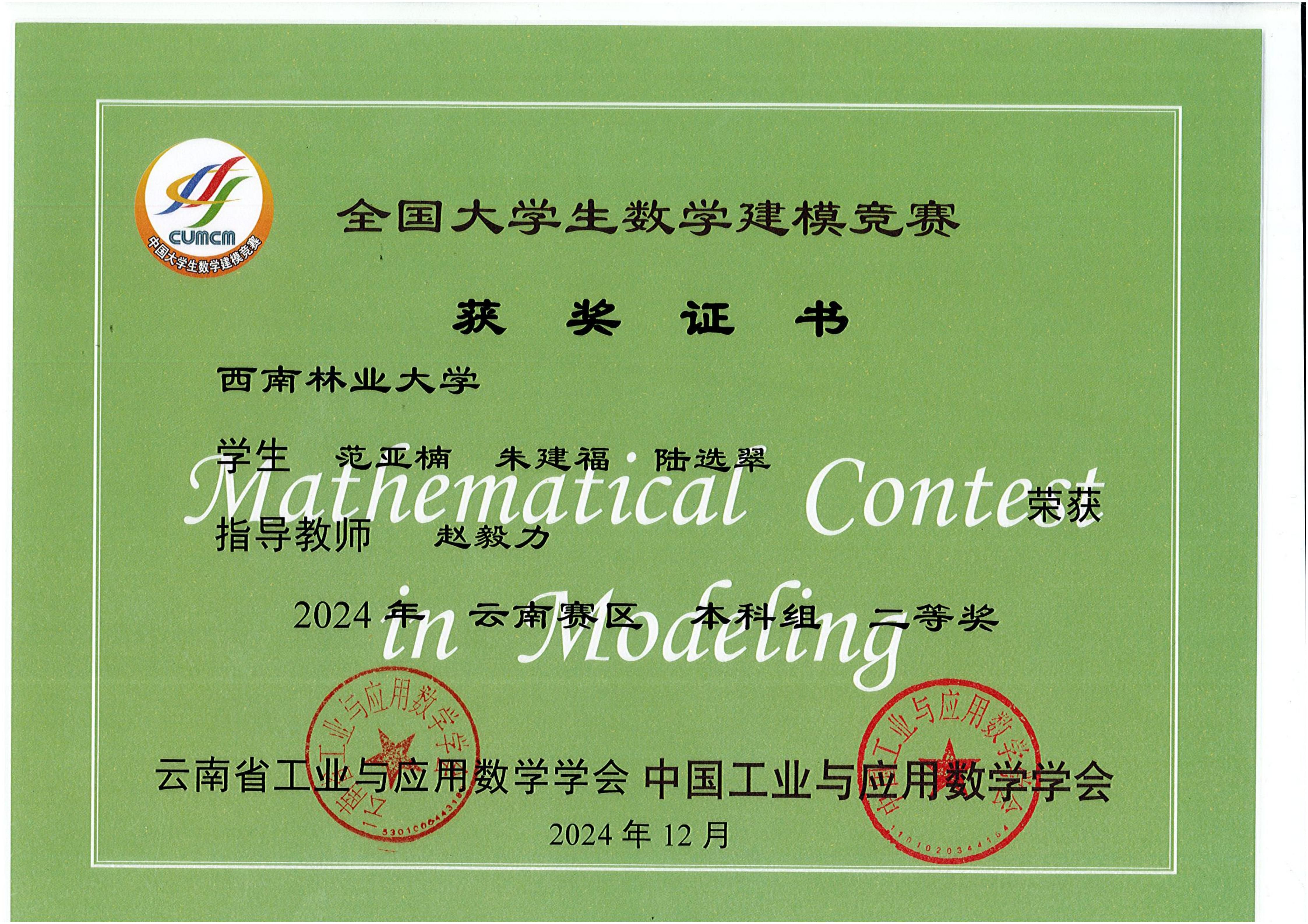 2024年全国老员工数学建模竞赛省级奖项