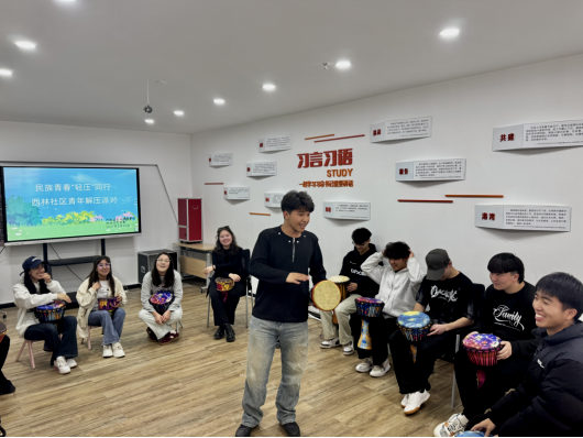 在这里,同学们参与了拓印、剪纸等非遗文化活动体验,近距离感受中华民族优秀传统文化的独特魅力;在社区青年解压派对中,随着手鼓的欢快节奏,所有的学习压力都随之消散。
